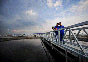 内蒙古托克托县在当地工业园区大力倡导环境污染治理▼“PPP-”模式,引入社会资本,共同打造园区污水处理体系▷◇•。图为7月17日,工作人员在托克托工业园区一家污水处理厂查看净化后的水质…▪。摄影/连振